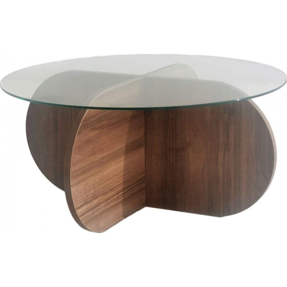 Soffbordet har en bordsskiva av tempererat glas för ökad hållbarhet och säkerhet. Det är både slipat och lätt att rengöra, vilket gör bordet perfekt för dagligt bruk. Den melaminbelagda spånskivan i valnötsfärg ger en tidlös och elegant look.