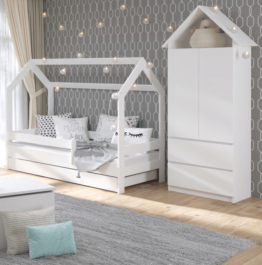 Casa vit barnsäng med utdragbar extrabädd 80x180 cm inklusive madrasser