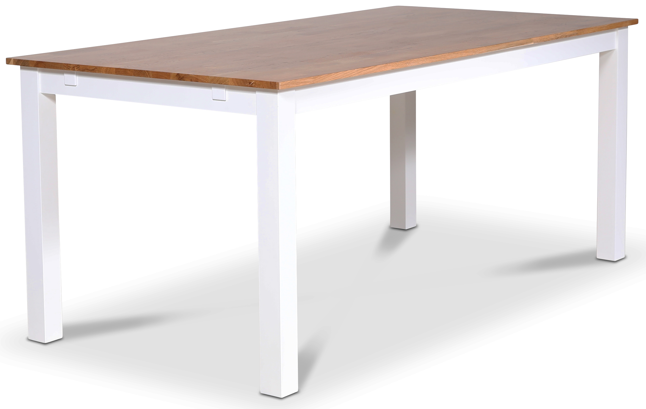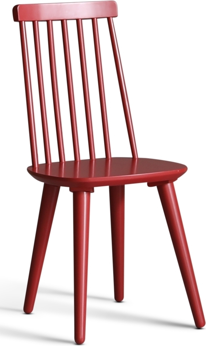 Dalsland matgrupp med stort och bra matbord med toppskiva i oljad ek och vitlackat underrede. Dalsland pinnstolar i en läcker röd lack (RAL3003)