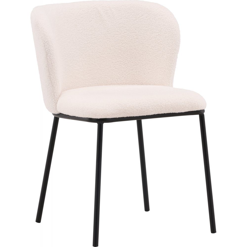 Stolen har en följsam, helklädd sits i vitt boucletyg, som inte bara är bekväm att sitta på, utan även ger en mjuk och inbjudande känsla. De minimalistiska stolsbenen i svart metall ger en elegant kontrast till den vita sitsen och skapar en stilren och modern look. Den stilrena utformningen gör att Edina Matstol står sig över tid. Dess tidlösa design passar perfekt i både klassiska och moderna inredningar. Den bekväma sitsen är utformad för att ge stöd under långvarig sittning, vilket gör den idealisk för både middagssällskap och avkoppling.