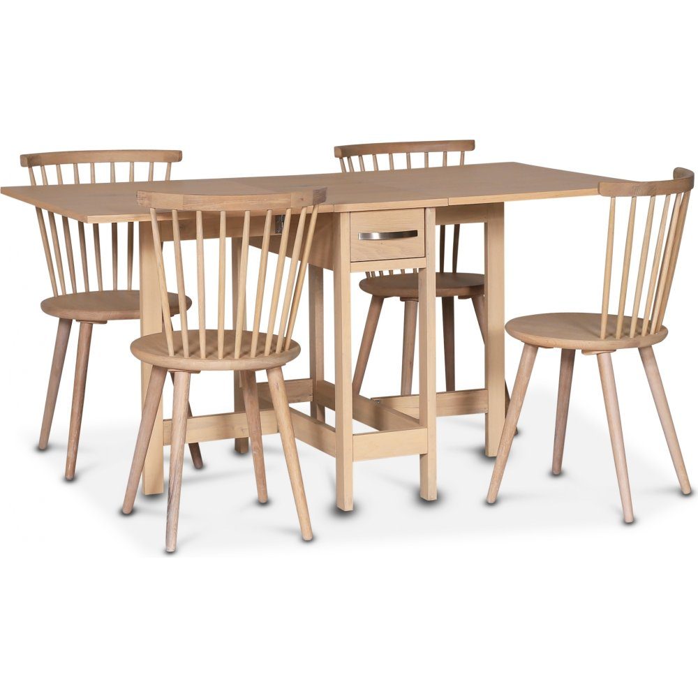 Fårö matgrupp; Fårö klaffbord i Whitewash med 4 st Castor pinnstolar i whitewash