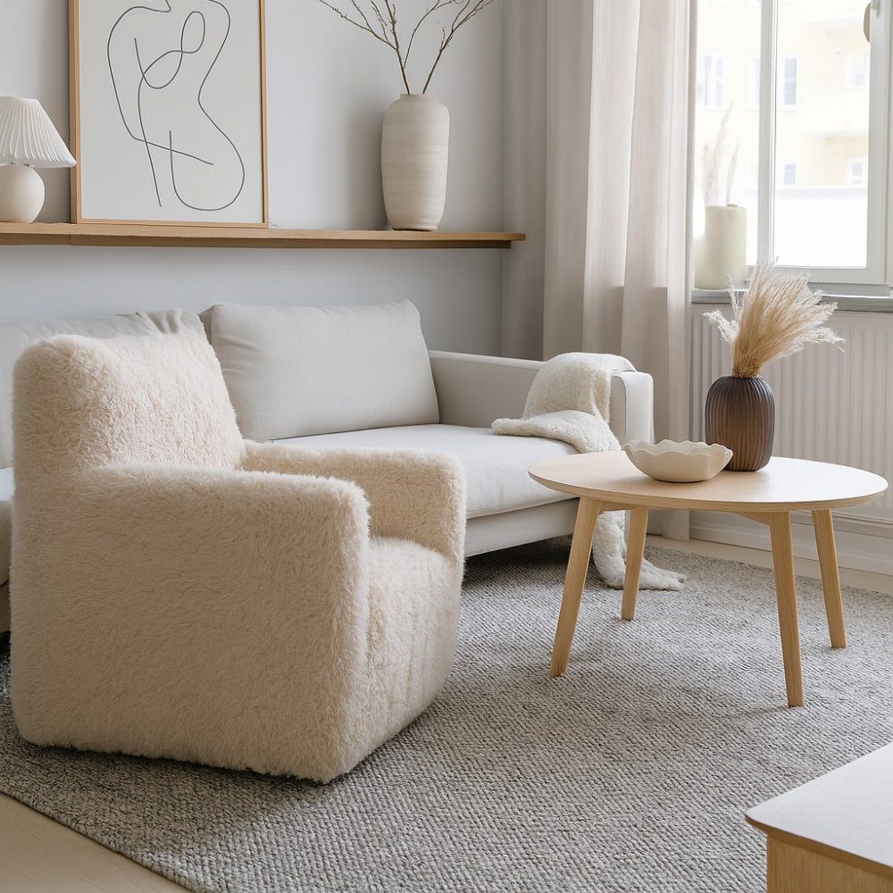 Fåtölj fluffig beige tygklädsel