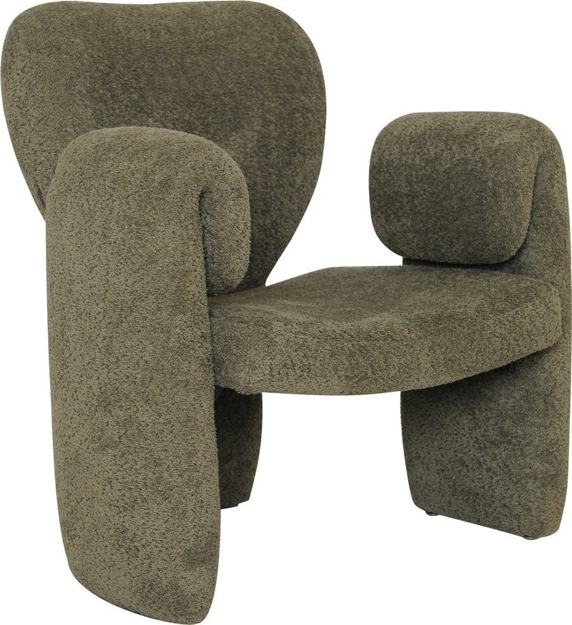 En fåtölj med skön komofrt och fräckt utförande. Fåtöljen är klädd i ett grönt mjukt chenille tyg.