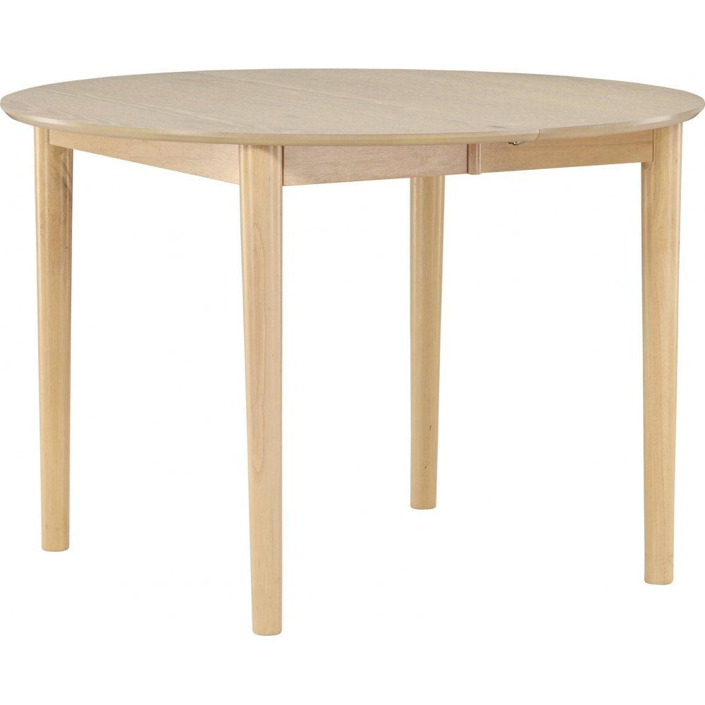 Skapa en inbjudande och flexibel matplats med matbordet Gilda, designat för att kombinera stilren estetik med praktisk funktionalitet. Med en diameter på 100 cm erbjuder Gilda en kompakt och elegant lösning för ditt kök eller matrum, samtidigt som det enkelt kan förlängas med 40 cm när du behöver extra utrymme. Bordet är klätt i en vacker vittvättad färg som framhäver träets naturliga struktur och ger bordet en ljus och luftig känsla. Den subtila nyansen gör Gilda lätt att kombinera med olika inredningsstilar och färgpaletter, från modern minimalism till klassisk charm. Den vittvättade finishen tillför en fräsch och tidlös elegans som lyfter hela rummet. Gilda är designat för att vara lika funktionellt som det är vackert. När du förväntar dig gäster eller behöver mer utrymme för servering, förlänger du enkelt bordet till 150 cm. Detta gör Gilda idealiskt för både vardagliga måltider och festliga tillställningar, samtidigt som det sparar plats när det inte används. Med sin robusta konstruktion och stilrena design är matbordet Gilda det perfekta valet för dig som vill ha ett bord som anpassar sig efter dina behov. Låt Gilda bli mittpunkten i ditt matrum, där dess vittvättade finish och förlängningsfunktion skapar en harmonisk och funktionell miljö för alla dina måltider.
