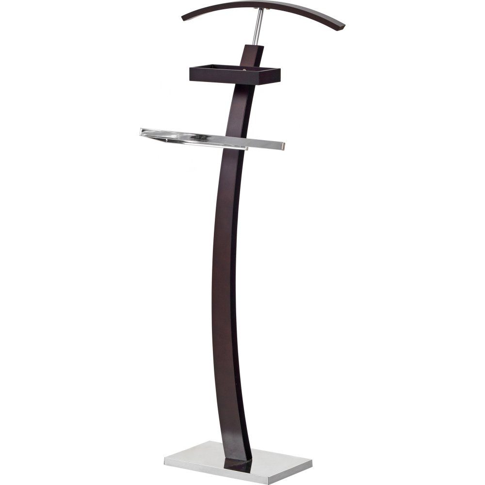 En lyxig herrbetjänt i böjträ med ett härligt utförande av wenge och detaljer i kromad metall. En perfekt möbel för att förbereda finkläderna, med rock/kavajhållare, hängare och en liten låda för exempelvis smycken.