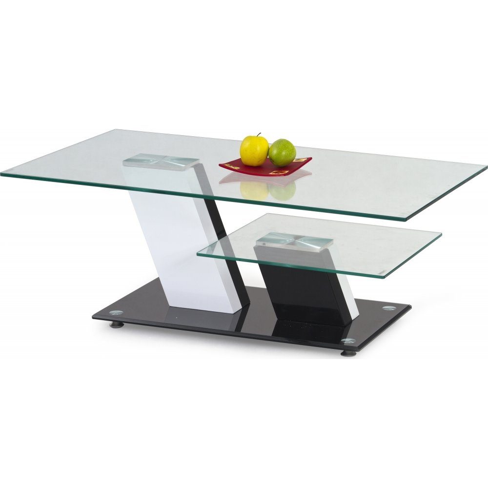 - Soffbord 110x60 cm - vit/svart/glas