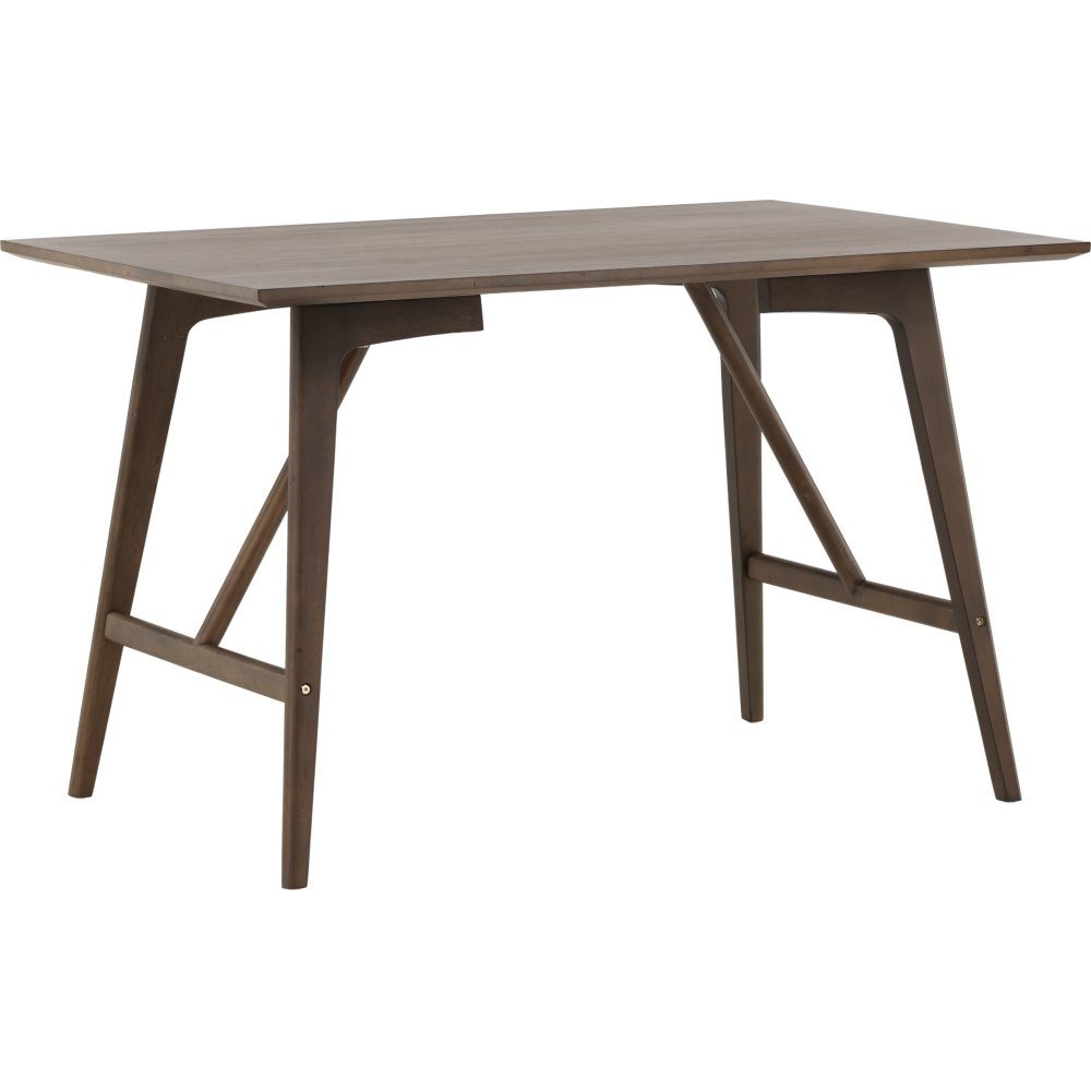 Matbord med en modern valnötsfärgad kulör som snyggt matchar det stilrena hemmet. Den rektangulära bordsskivan har en matt finish och benen är lätt utsvängda med en stabiliserande stomme, genomgående tillverkat i MDF och gummiträ. Matcha med ett par bekväma matstolar så får du en komplett matgrupp till ditt hem! Levereras omonterad.