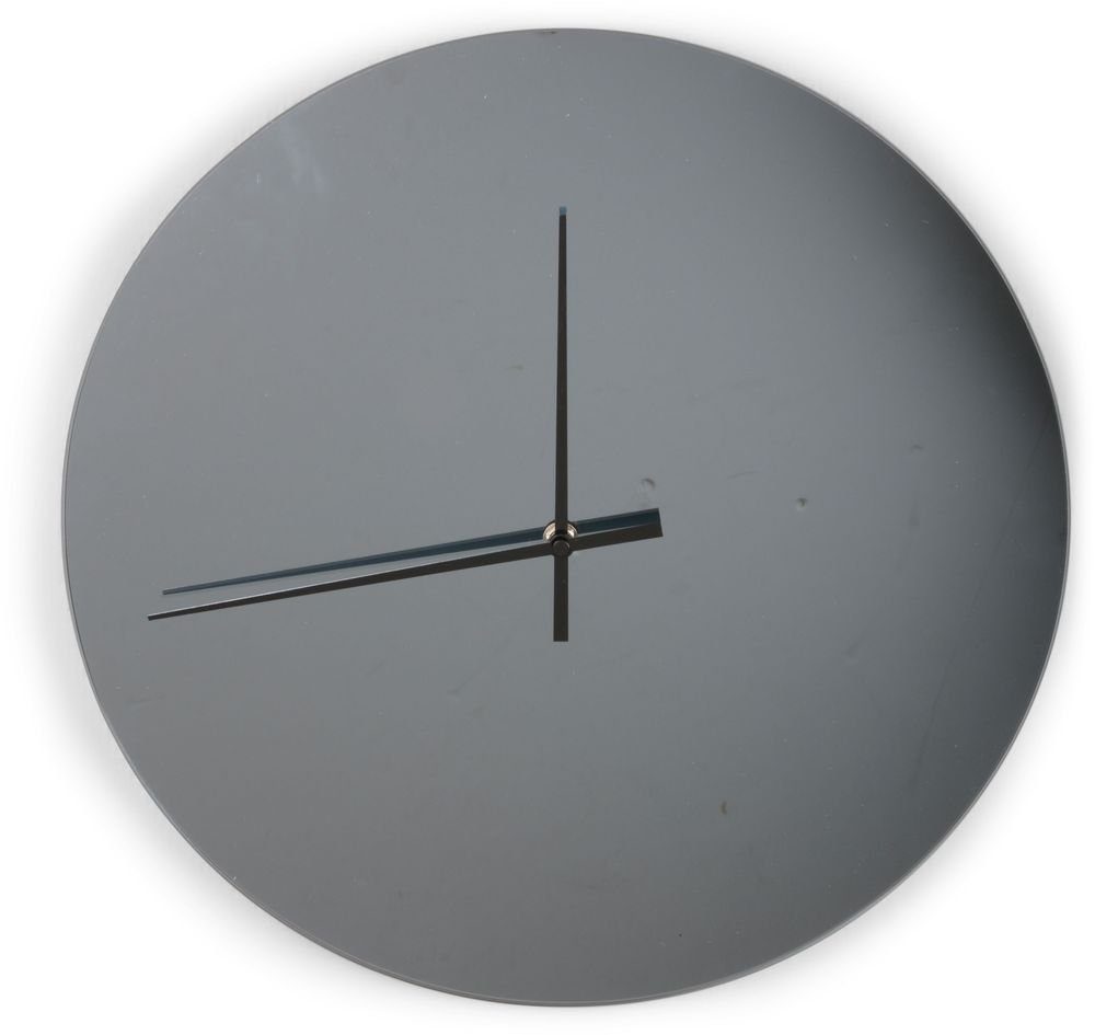 En snygg och modern väggklocka i grått spegelglas.