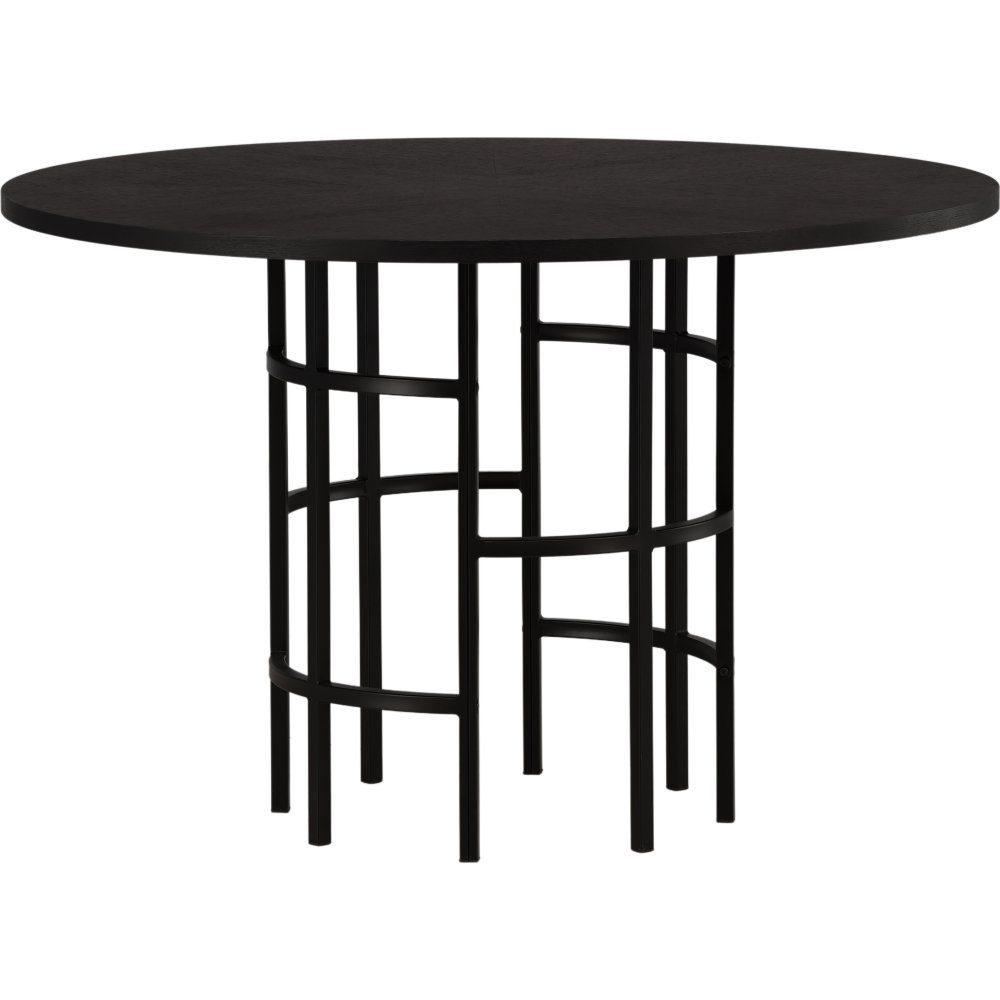 Matbord som imponerar. Skapa ett modernt blickfång i ditt hem med ett runt matbord med elegant svart bordsskiva i MDF och ett dekorativt, cylinderformat underrede i svart metall. Ett runt matbord är perfekt om du vill skapa en social och inbjudande atmosfär i ditt hem. Möblera köket eller vardagsrummet med ett iögonfallande bord där ingen hamnar på kanten.