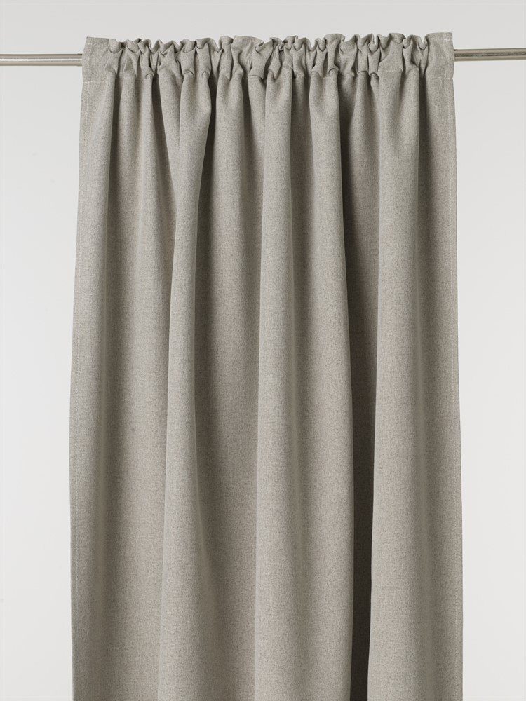 Mörkläggningsgardin tillverkad i polyester. Är 100% mörkläggande. Kommer två längder i en förpackning. Upphängning: multibandslängd som kan hängas upp på tre olika sätt. Med fingerkrokar/ringar på stången eller i hällorna. Fållfix medföljer så man enkelt kan justera längden utan att sy.