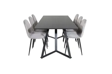 Dipp Matgrupp 180 cm Rektangulär med 6 Velvet stolar, Svart