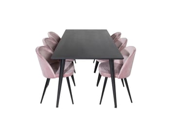 Dipp Matgrupp 180 cm Rektangulär med 6 Velvet Deluxe stolar, Svart
