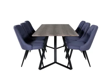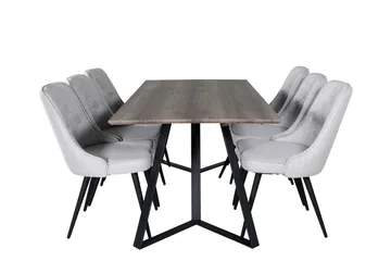 Polar Matgrupp 180 cm Rektangulär med 6 Velvet Deluxe stolar, Grå