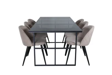 Dipp Matgrupp 180 cm Rektangulär med 6 Velvet Deluxe stolar, Svart