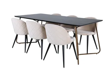 Leif Matgrupp 200 cm Rektangulär med 6 Velvet stolar, Beige