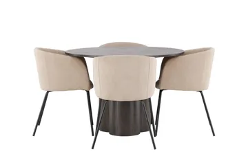 Estelle Matgrupp 106 cm Rund med 4 Velvet stolar, Beige