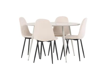 Olivia Matgrupp 110 cm Rund med 4 Agnes stolar, Beige/Vit