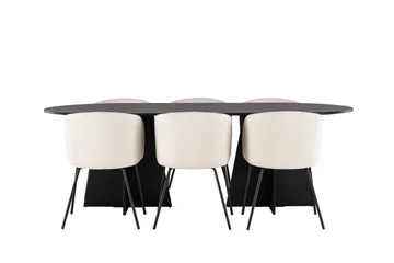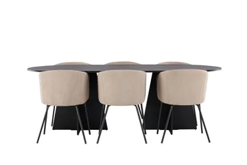 Jimmy Matgrupp 195 cm Rektangulär med 6 Petra stolar, Svart