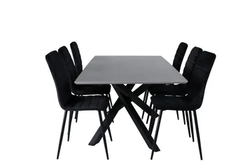 Leif Matgrupp 200 cm Rektangulär med 6 Velvet stolar, Svart