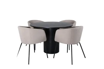 Bianca Matgrupp 110 cm Rund med 4 Petra stolar, Svart