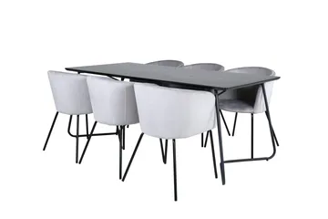 Jimmy Matgrupp 195 cm Rektangulär med 6 Petra stolar, Svart