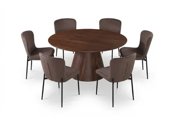 Siena Matgrupp runt 130 cm Valnöt med 6 Elsie Matstolar, Valnöt/Brun