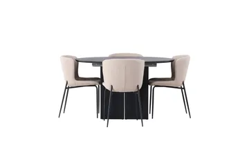 Matilda Matgrupp 130 cm Rund med 4 Yesterday Stolar, Svart