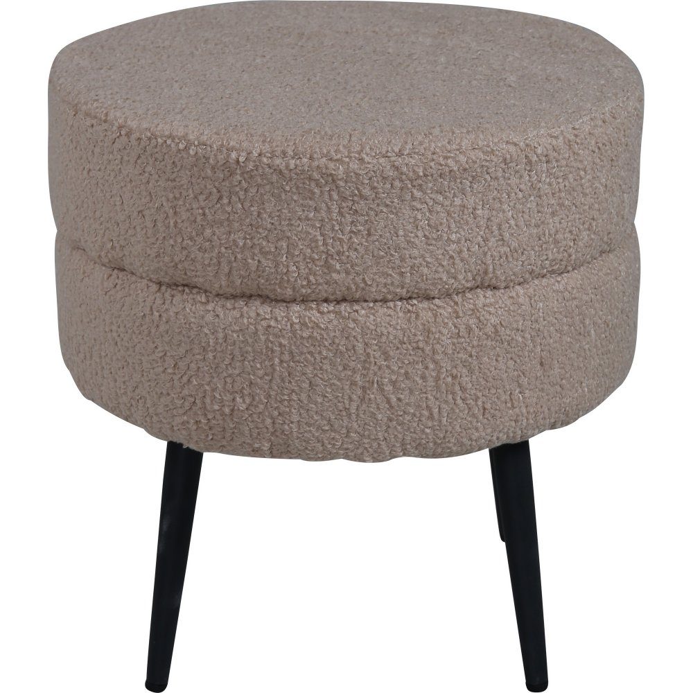 Sittpuff av trä och stål, klädd med polyestertyg.