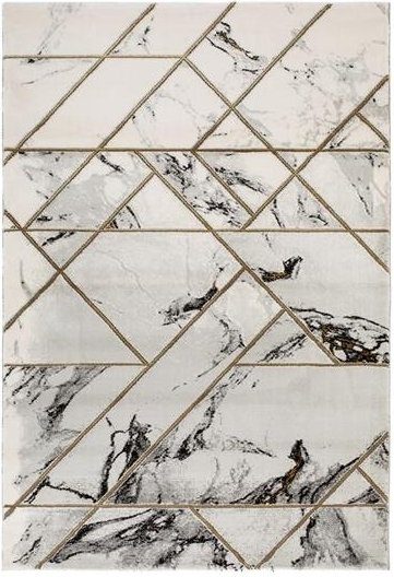 Mattans mönster för tankarna till marmor då den skiftar i olika vit/grå toner, samt att den har mörkare partier som ger mattan ett djup. Mattans mönster är tillverkat i Polyestermed en guld ton, vilket ger ett härligt lyster när ljuset faller på.