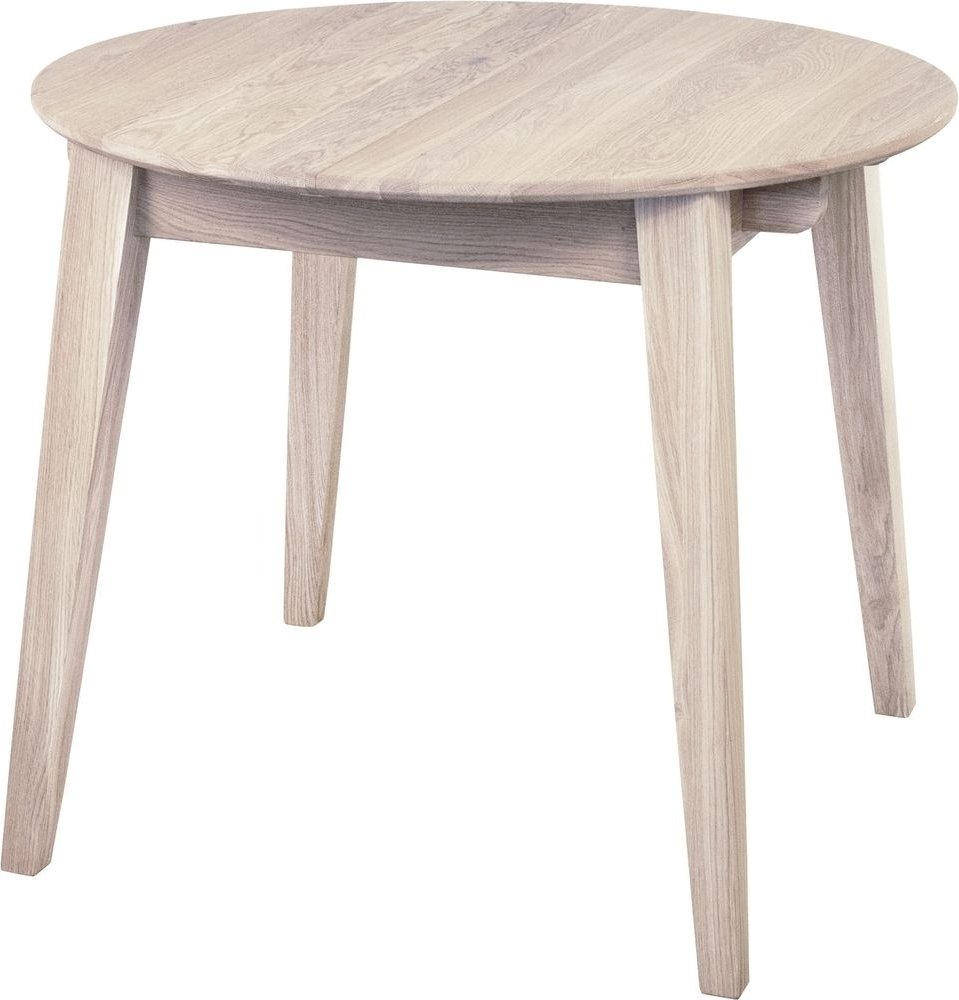 Genova matgrupp bestående av ett runt/ovalt matbord i vitpigmenterad ek som praktiskt och smidigt kan förlängas från 90 cm till 130 cm.
