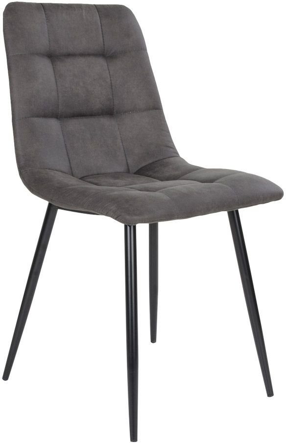 Stol i mörkgrått mikrofibertyg med svarta stålben.