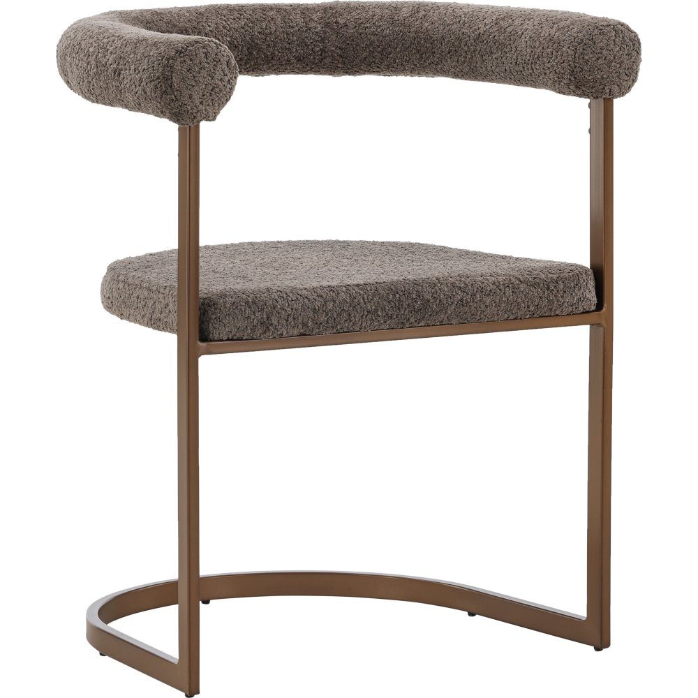 Läcker matstol i genomtänkt utförande som är lika bekväm som stilren! Den rundade stolsryggen och stoppade sitsen är i grått boucle-tyg och ramkonstruktionen i minimalistisk design är i brunt stål. Inred ditt hem med matstolar som du gärna sitter kvar länge i och njuter av trivsamma måltider tillsammans med nära och kära!