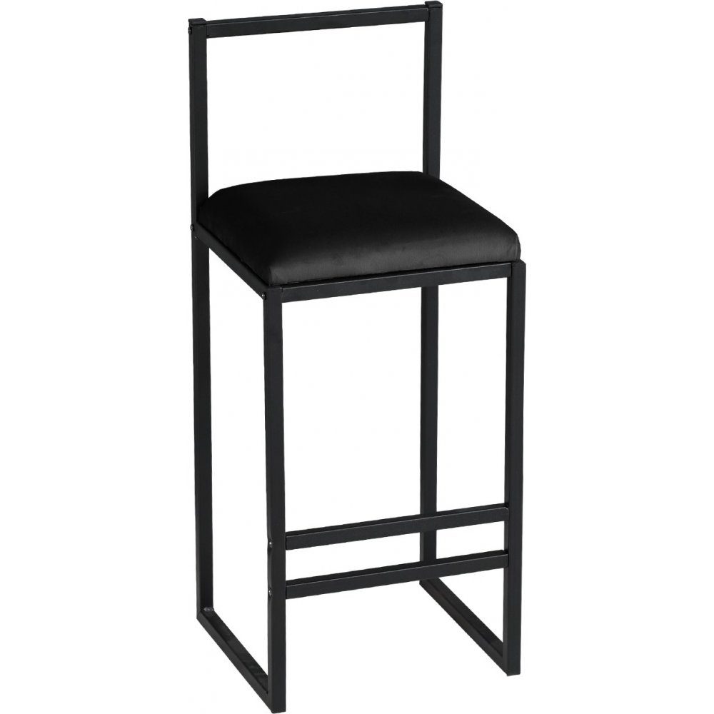 Nordic barstol i minimalistisk design av svartlackad metall med klädsel i svart sammets yg.