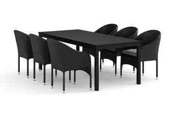 Tunis utomhus matgrupp 205x90 cm med 6 Oliver karmstolar med dyna, Svart/Svart
