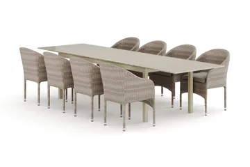 Tunis utomhus matgrupp förlängningsbart 205/305x90 cm med 8 Thor fåtöljer, Beige/Beige