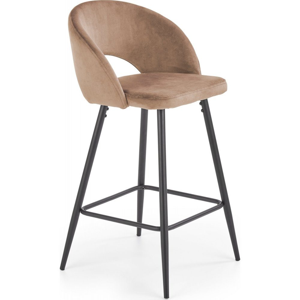 Barstol med underrede av stål och klädsel av sammetstyg.