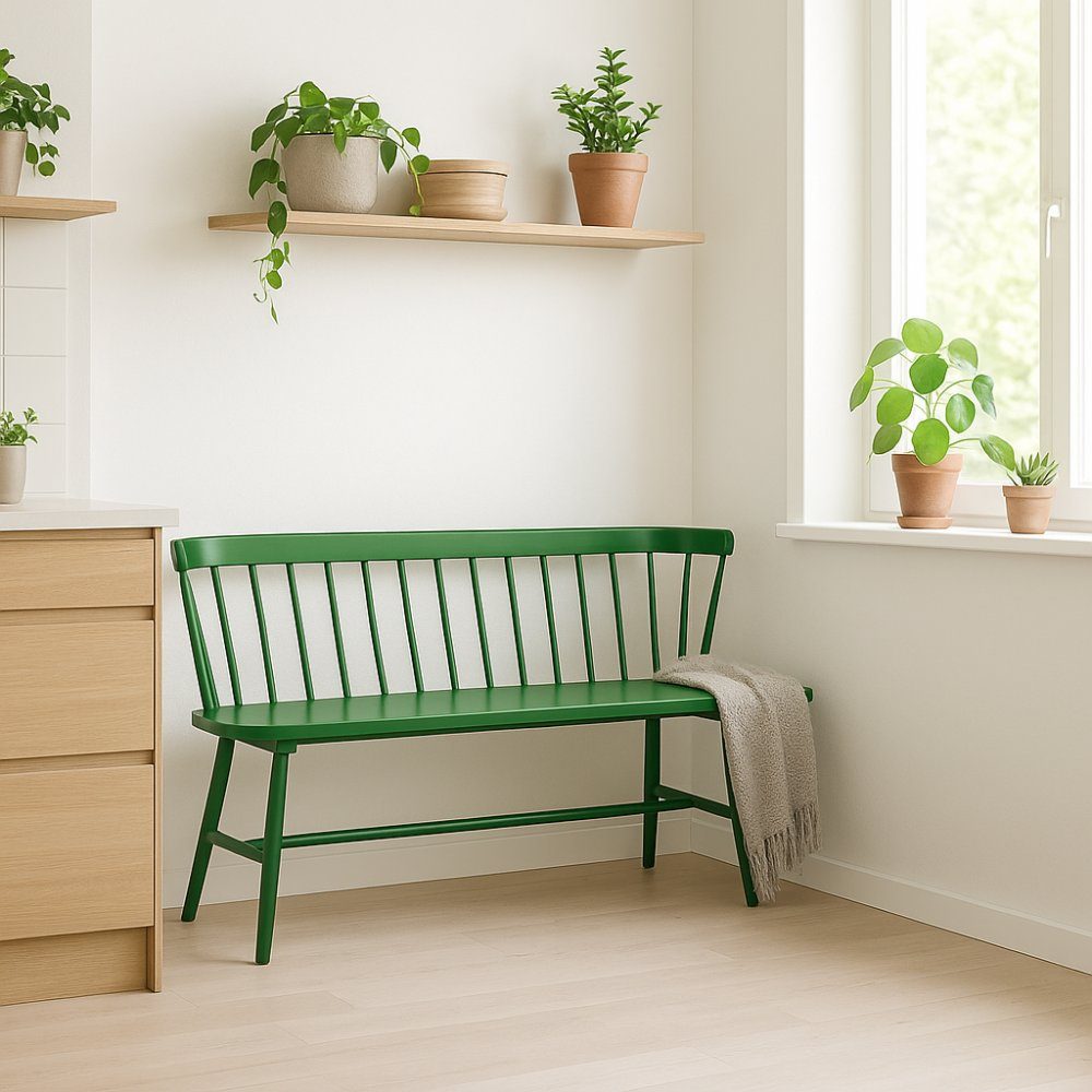 Sandhamn grön pinnsoffa i välkänd retrodesign. En klassiker i grönlackat massivt trä. Färgkod RAL6001