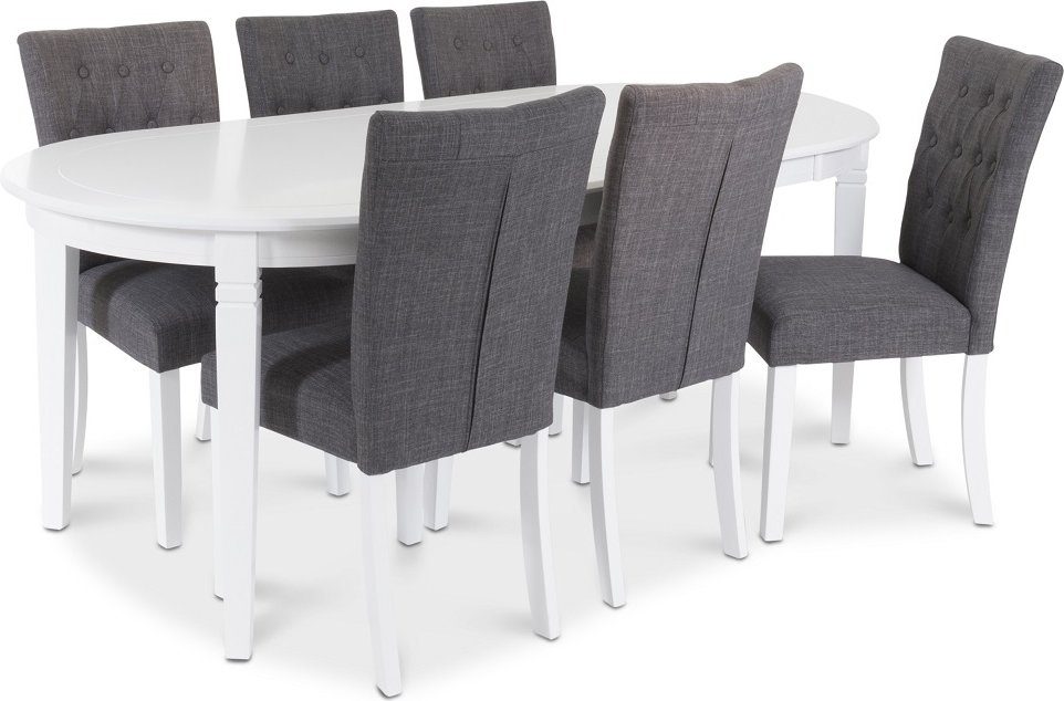 - Sandhamn Matgrupp; Ovalt bord med 6 st Crocket stolar i Grått tyg
