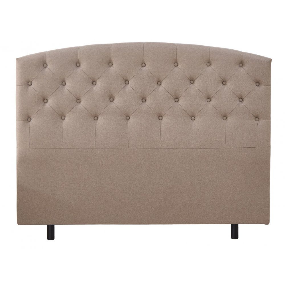 Capetown välvd sänggavel 180 cm bred. Totalhöjd: 125 cm inklusive ben. Beige tyg.