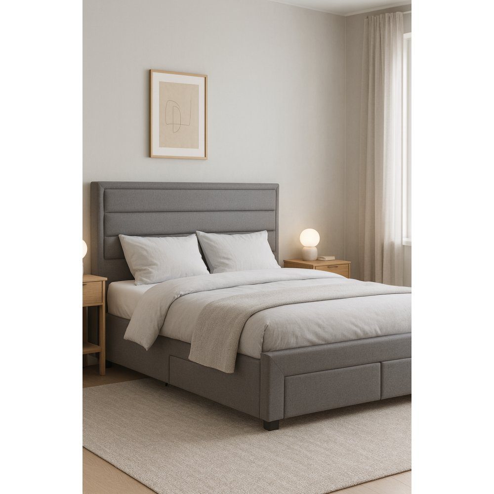 Sängram med förvaring inklusive sänggavel 160 x 200 cm grå