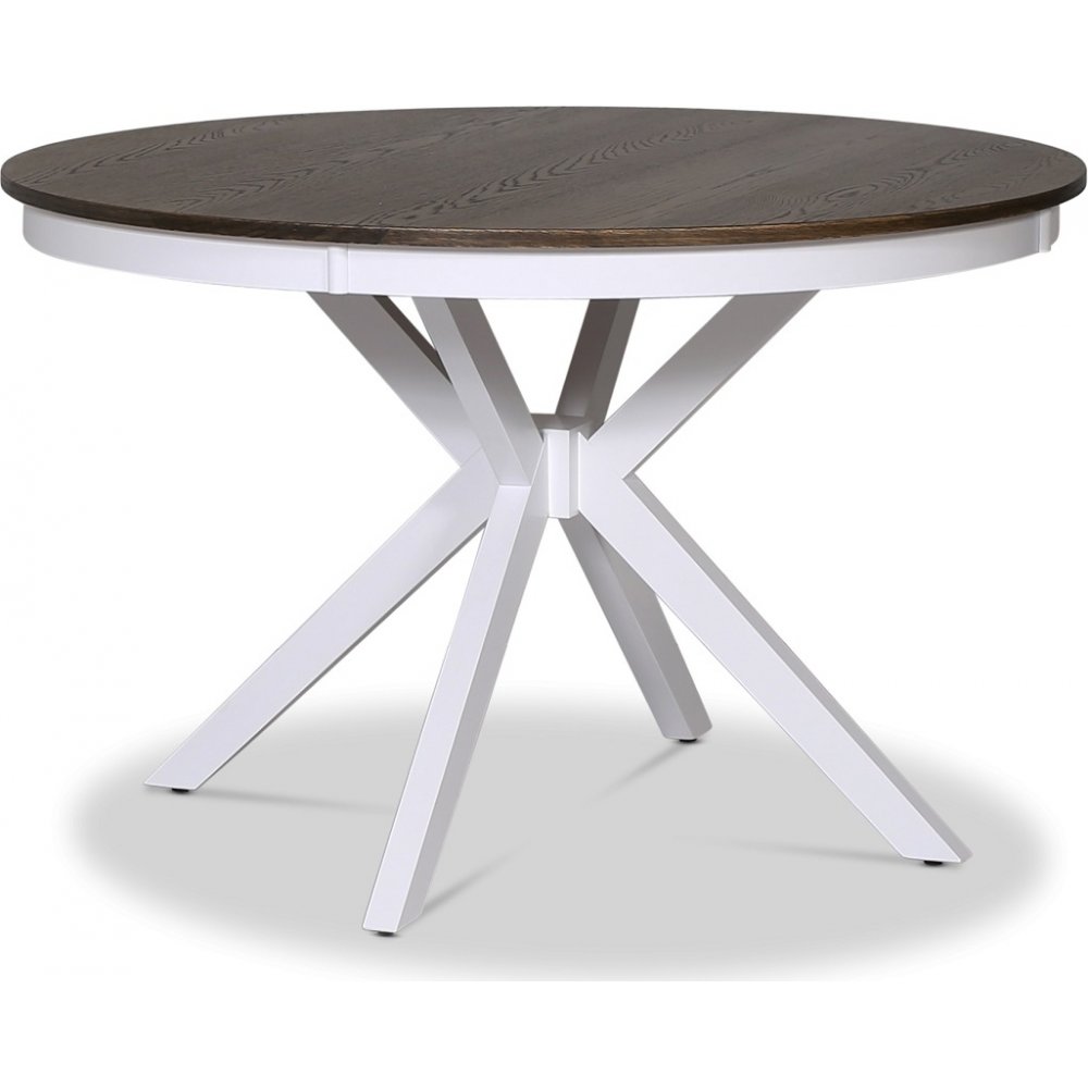 - Skagen matgrupp; runt matbord Ø120 cm - Vit / brunoljad ek med 4 st vita Karl Pinnstolar