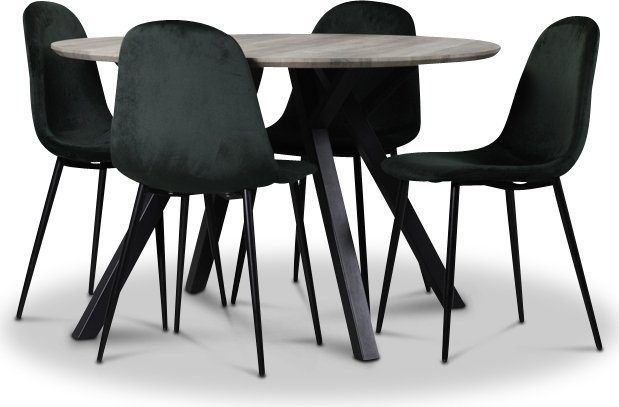 Smokey matgrupp, runt matbord med 4 st Carisma sammetsstolar - Mörkgrön: