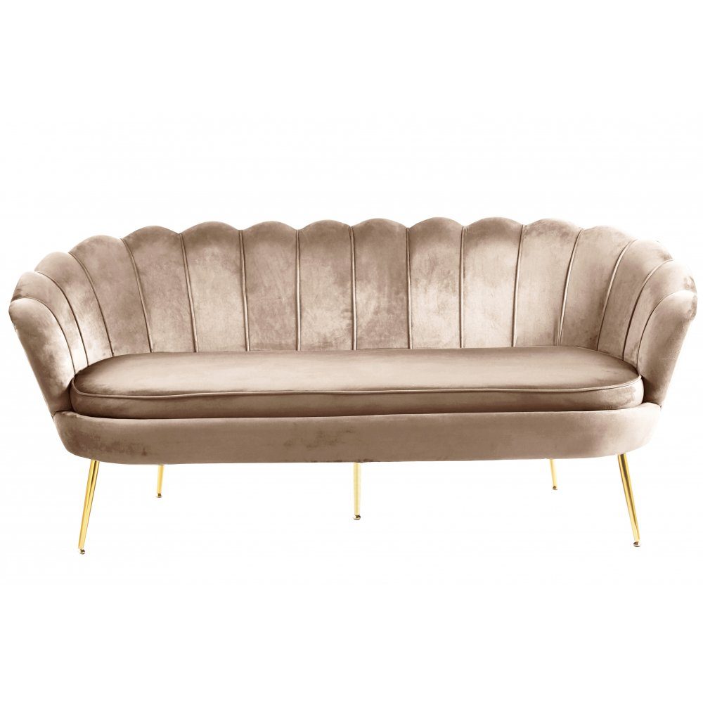 Soffa 3-sits i mörk beige sammet/mässing - Kingsley