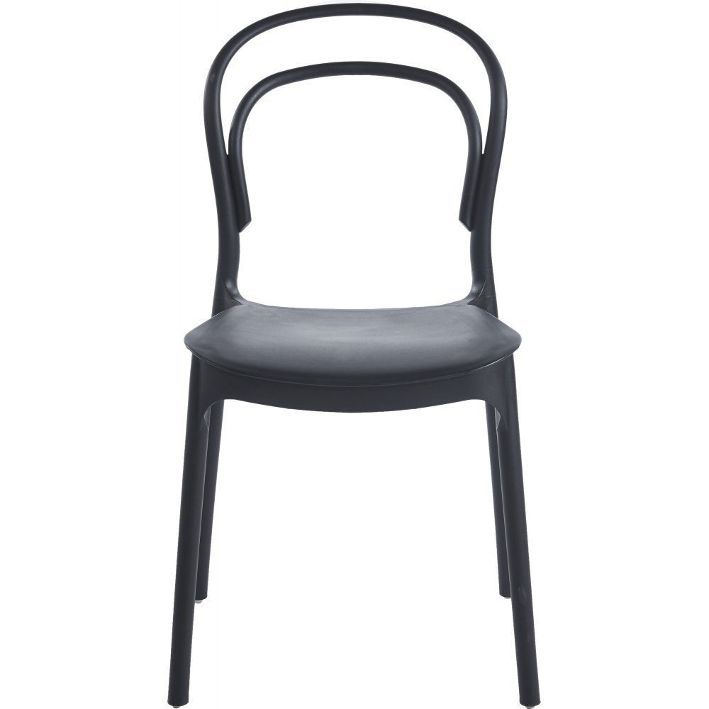 Svart matstol i väderbeständig polypropylene-plast. Stolen är stapelbar. Det går att använda stolen både inomhus och utomhus.