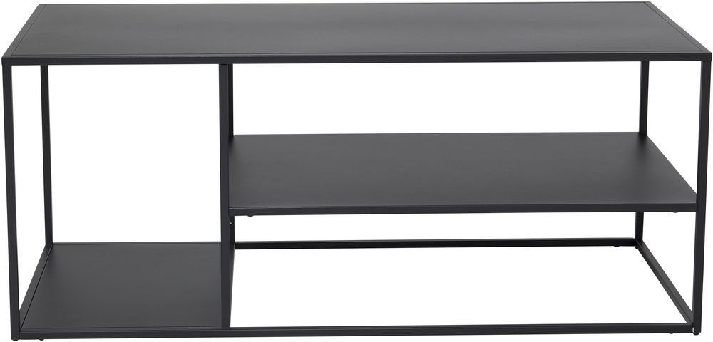 Träne serie innehållande bokhyllor, soffbord, konsolbord och sidobord. Möblerna är moderna i sitt formspråk. Robust tillverkade av metall, pulverlackerade för en fin och tålig yta. Detta soffbord har hyllor i olika plan, för ett unikt uttryck.