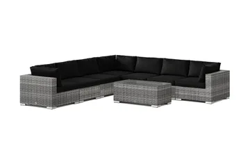 Bahamas utomhus hörnsoffa 6-sits vändbar med fåtölj och bord, Svart