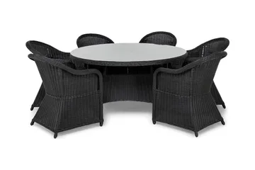 Marcus Matgrupp 140 Rund + 6 Light Fåtöljer m Dyna, Svart