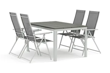 Tunis utomhus matgrupp 205x90 cm med 6 Sanna positionsstolar, Vit/Grå